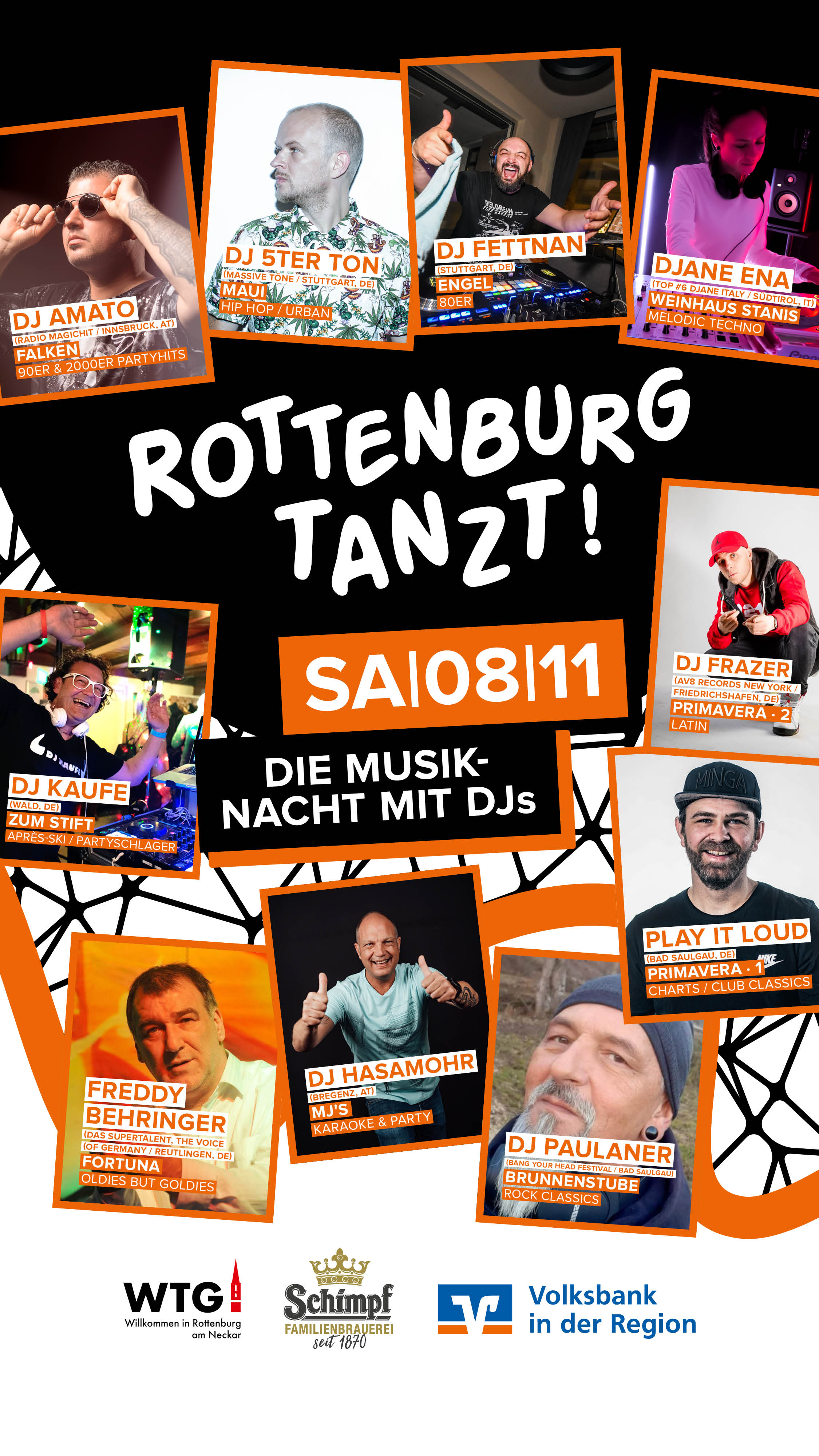 Nationale und internationale Künstler werden Rottenburg in dieser Nacht in eine Partystadt verwandeln - von HipHop, Elektro, Charts, Urban, Rock-Klassiker, Schlager, Oldies, Funk, 70er, 80er, 90er bis hin zu Techno und House gibt es hier für alle möglichen Generationen die perfekte Auswahl an Musik.